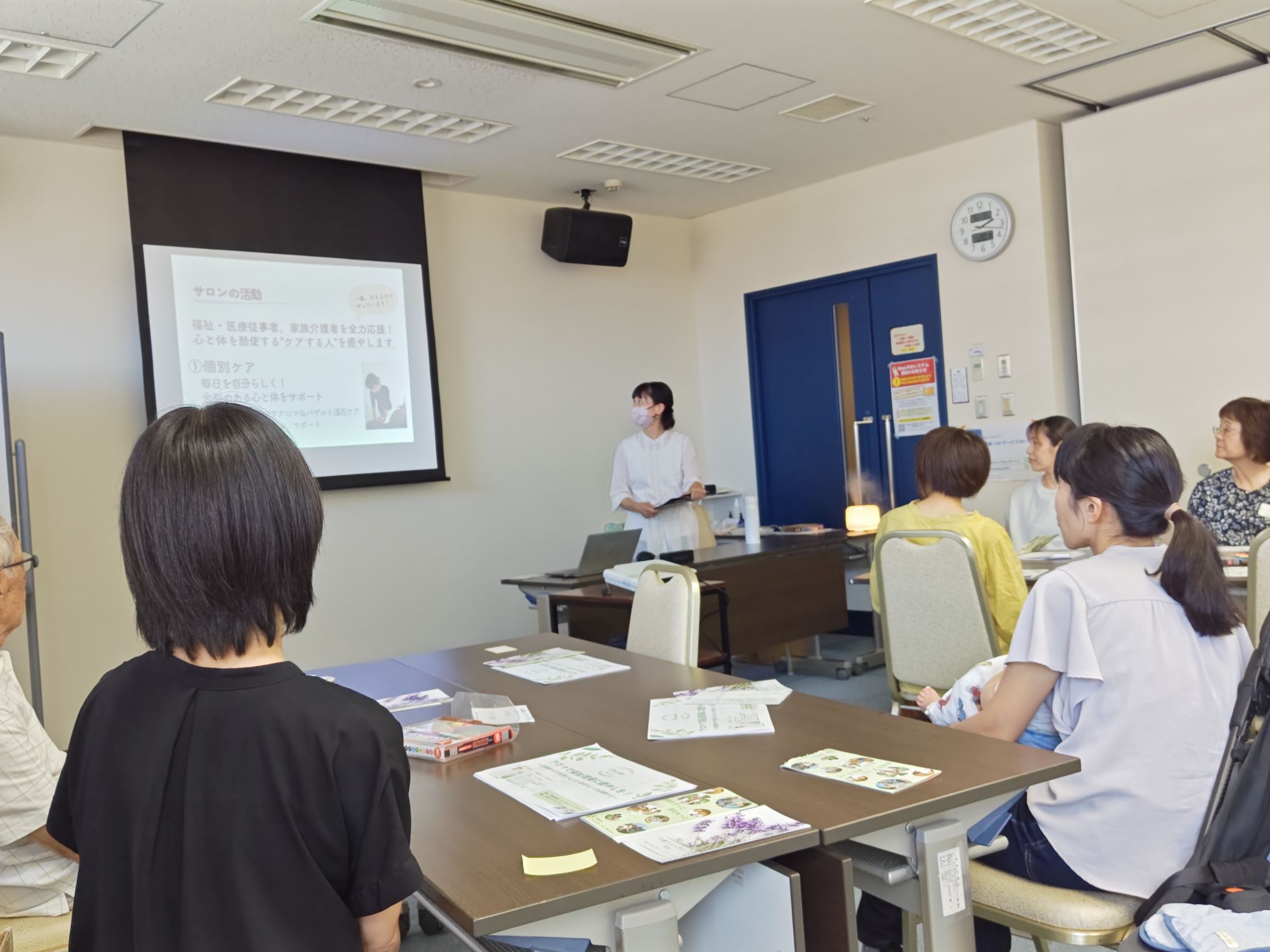 7月19日(土)、草津市立市民交流プラザにて、『 I Do Cafe Vol.21 アロマで福祉現場に癒やしを!〜支援者やケアを受ける人の自分らしくを応援する〜』を開催しました。介護アロマサロンWai代表 小窪紀枝さんをゲストにお招きし、参加者・関係者あわせて15名が集いました。